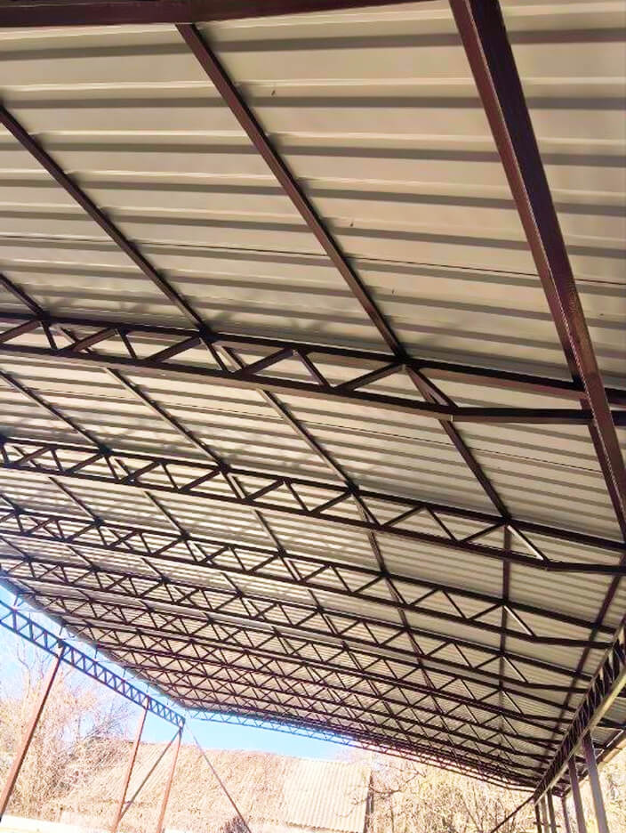 - Балочные фермы (шаг 1.5м) - профтруба 40x40(2мм) заполнение 40x20(2мм).